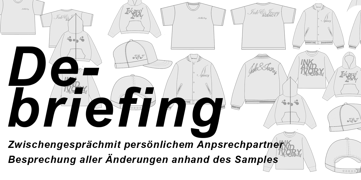 Mache dir bereits vor dem Gespräch gründlich Gedanken über Stoff, Fit, Veredelung, Artwork usw.